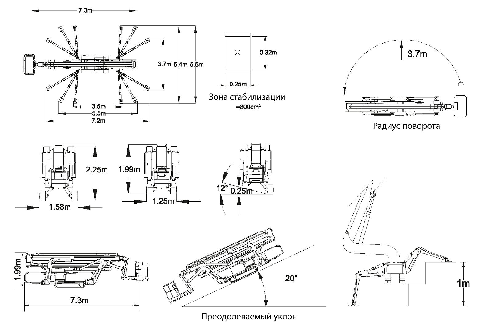 7300 х 1250 х 1990 мм