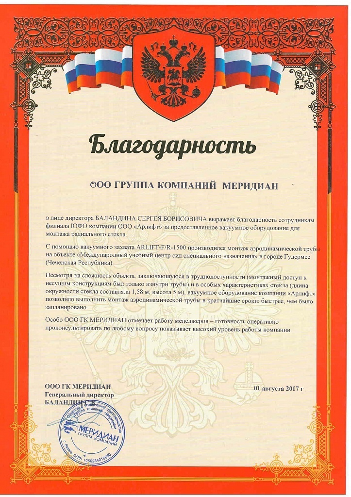 Благодарность от группы компаний Меридиан