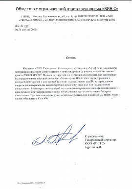 Отзыв от ООО "Строитель-КВ"